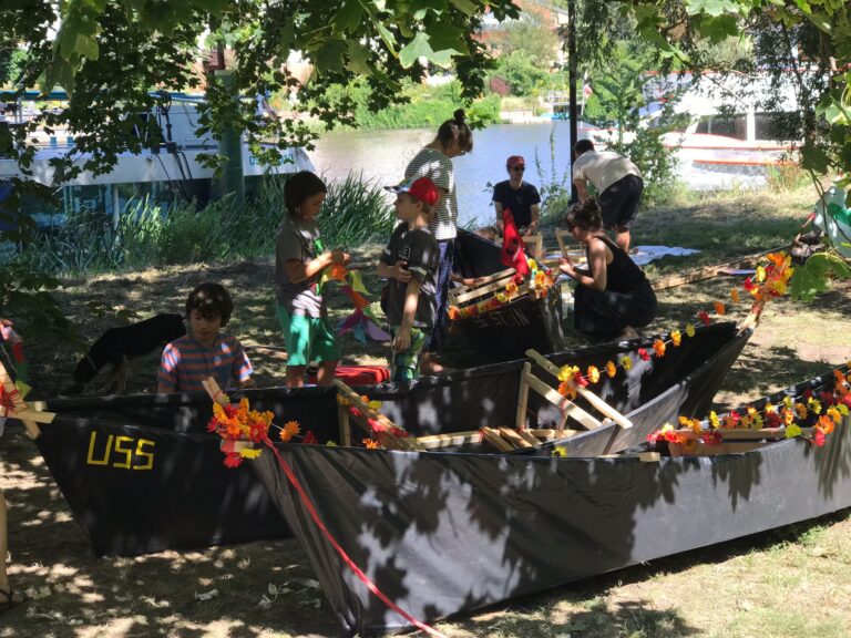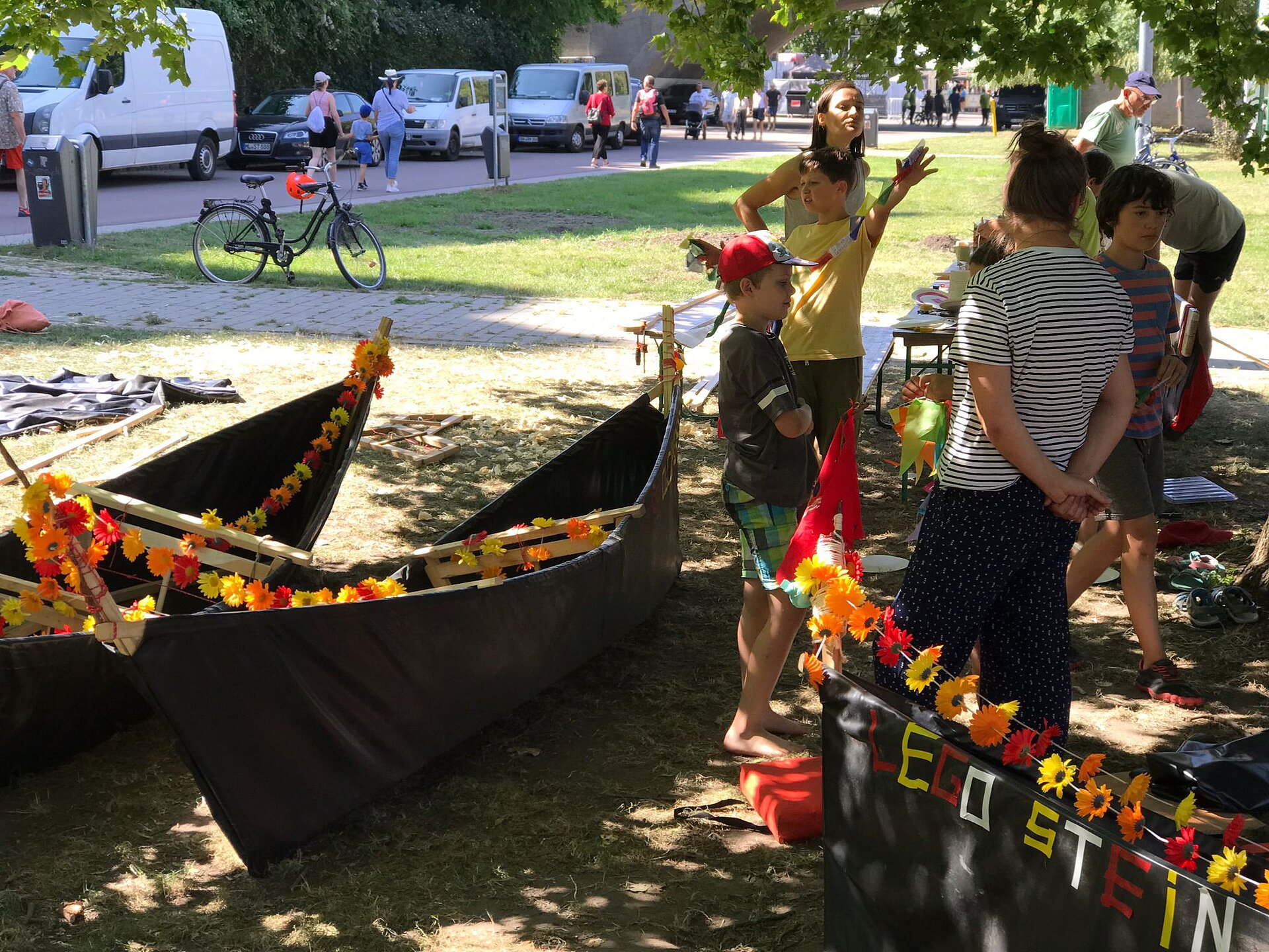 Der erste Tag wurde zum Bau der Boote genutzt. Am zweiten Tag fand eine erste Probefahrt statt und die Boote wurden für den Bootkorso Kunterbunt verziert. So entstanden die USS CUCUMBER, das Lego- und das Käsekuchenboot. Der krönende Abschluss war dann die Teilnahme am Bootskorso. Einige Familien nahmen die Boote anschließend mit, um mit ihnen noch weitere Gewässer zu erobern.