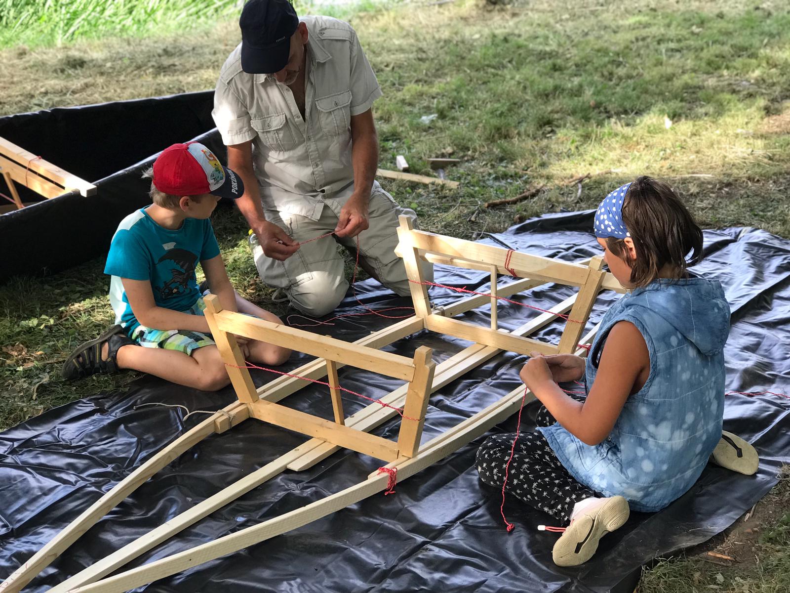 Am 23.08. und 24.08. fand bei uns das zweite Bootsbau-Camp statt. Kinder und Jugendliche konnten zusammen mit ihren Eltern, der Bordcrew und einem Burgstudenten ihre eigenen Boote bauen und verzieren. Der Bauplan der Boote wurde von Johann Kogge entwickelt und ist auf Anfrage frei zugänglich. Die Boote bestehen ausschließlich aus Holzlatten, Schnur und Plane und können mithilfe einer Säge und einem Messer erarbeitet werden.