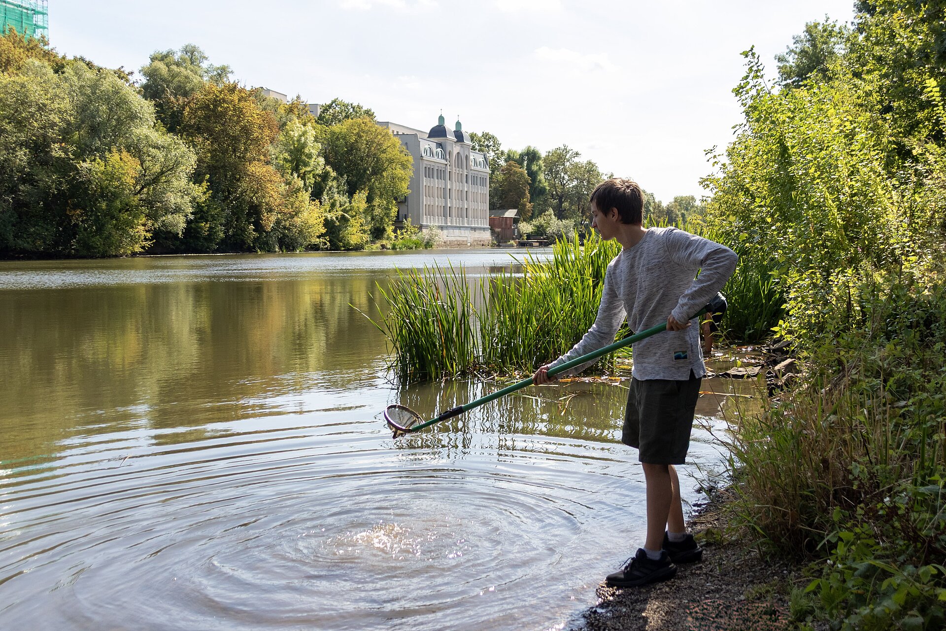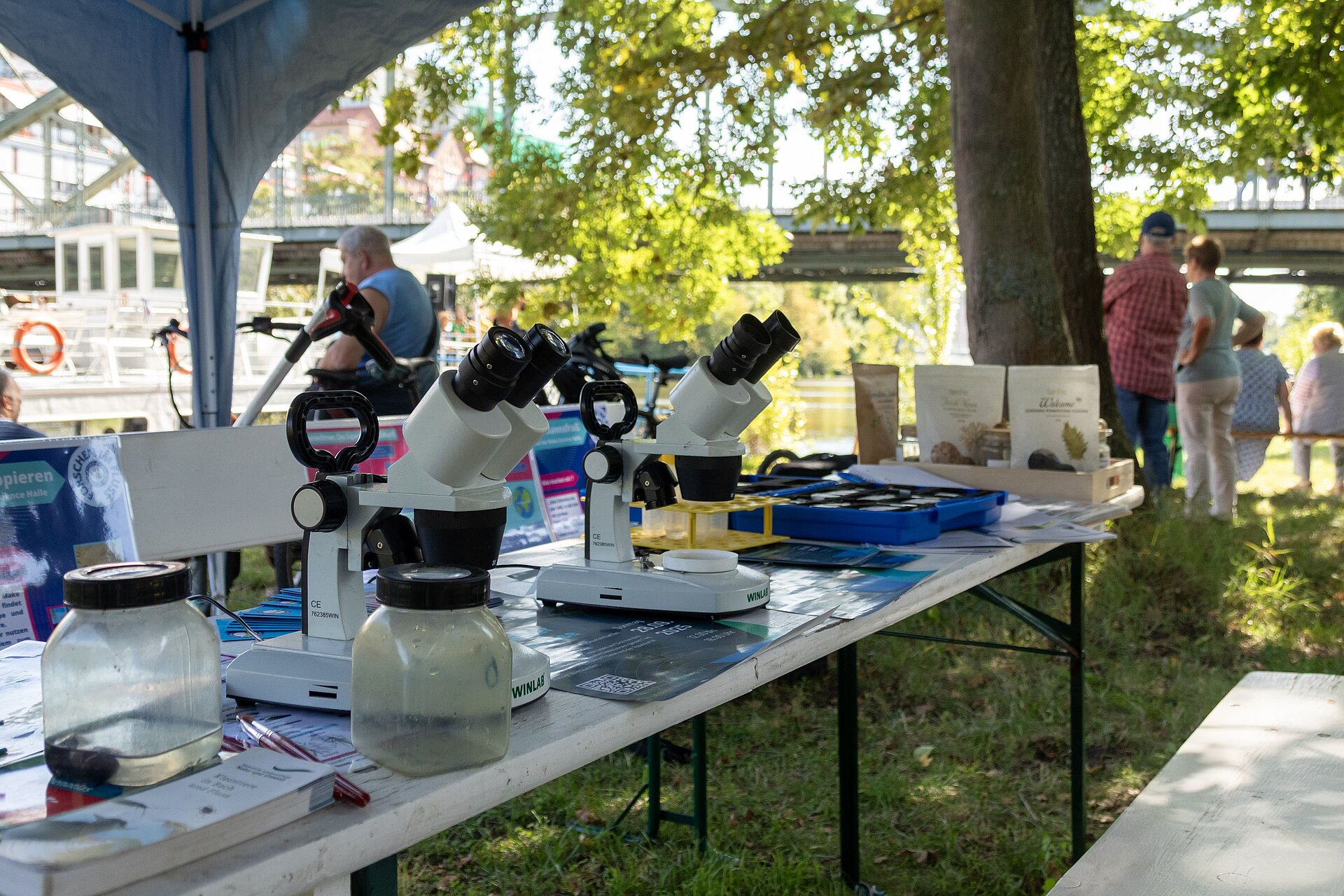 Mit dem RiverCheck Koffer und Keschern haben wir zum Genzmer Brückenfest die Saale untersucht.