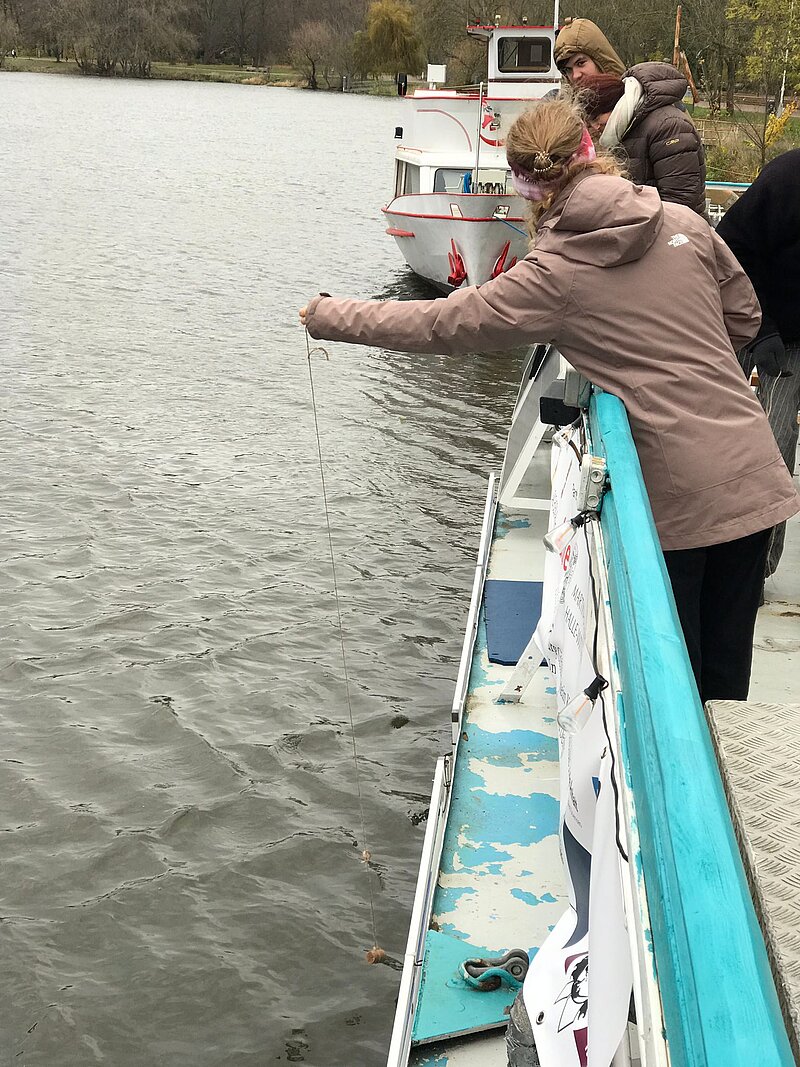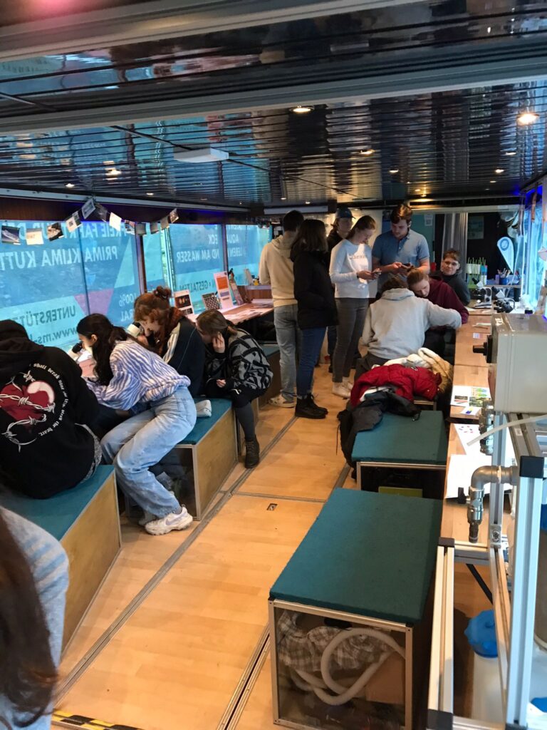 Am 23.11.23 hat uns eine Gruppe Freiwilliger aus dem FSJ Wissenschaft vom DRK besucht. Wir verbrachten einen ganzen Seminartag auf dem Schiff. Zuerst erzählten wir über die Projekte auf dem Schiff, um anschließend gemeinsam einen River Check durchzuführen. Die Freiwilligen schauten sich außerdem die Umgebung bei einem Kescher-Spaziergang an und konnten sich dann auf der Make Science Halle bei Algen-Smoothie und Algen-Waffeln wieder aufwärmen. Im zweiten Teil der Projkettages wurde das Wissen der Freiwilligen über Algen in einem Quiz getestet. Anschließend konnte die Gruppe an verschiedenen Stationen Algen mikroskopieren, Experimente zum Klimawandel aus dem LMU-Klimakoffer ausprobieren und mit einem Wasserstoffauto eine mögliche Mobilitätsform der Zukunft testen. Vielen Dank für den schönen Tag!