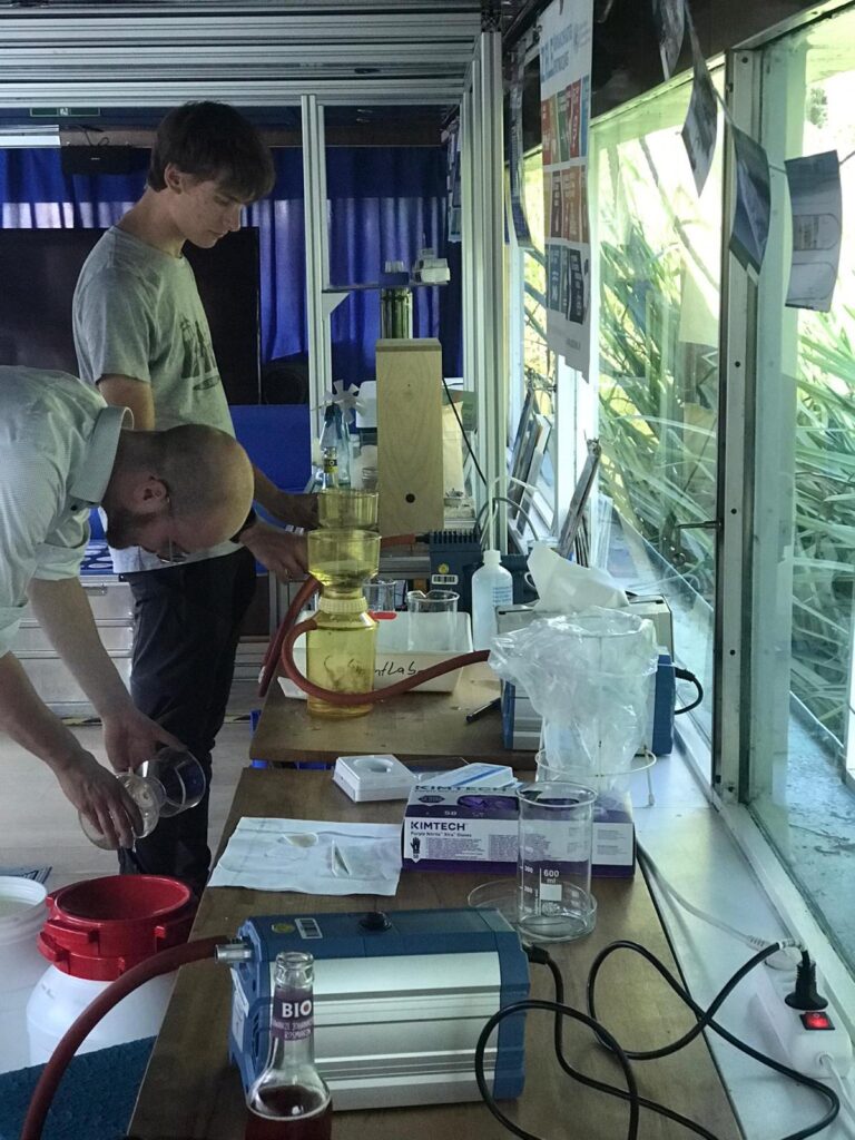 Am 29.08.2024 fand bei uns an Bord die Mitgliedsversammlung des DRK statt. An drei verschiedenen Stationen wurde über das Thema „Algen“ informiert und es wurde die Wasserqualität der Saale mit dem RiverCheck überprüft. Zu Gast war ebenfalls Angus Rocha Vogel, Doktorand am UFZ, der ein Experiment zum Einfluss von Reifenabrieb auf Gewässer vorstellte.