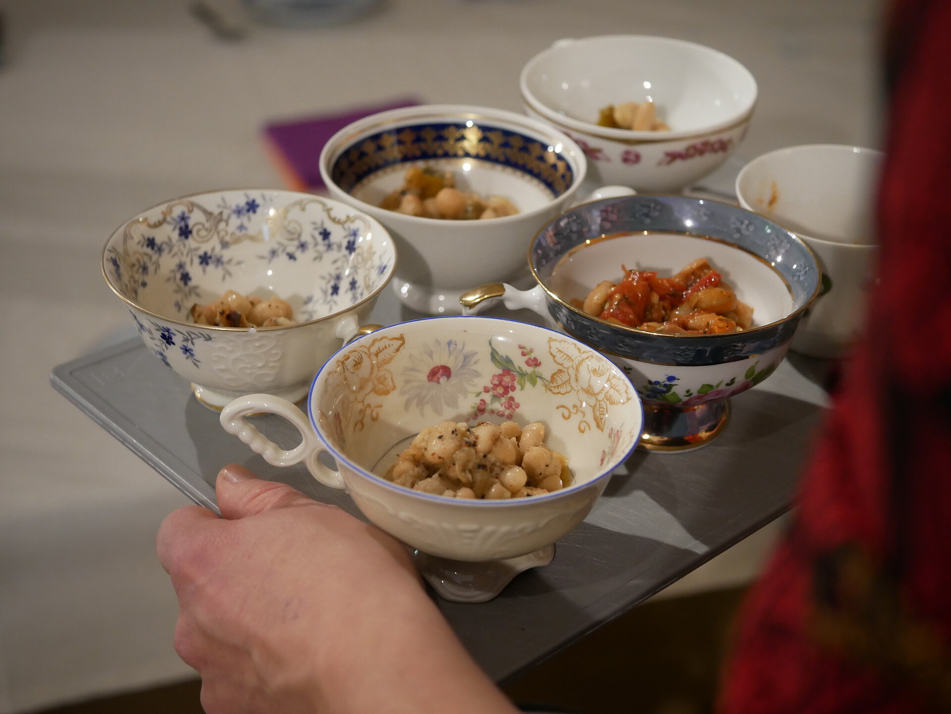 Neben leckeren Kostproben – Weiße Bohnen in rauchigem Cascabel-Chili-Öl und weiße Riesenbohnen mit gerösteten Kirschtomaten (nach Ottolenghi) sowie georgisches Bohnenmus – erfuhren die Gäste mehr über das europäische Forschungsprojekt INCREASE (https://www.pulsesincrease.eu/experiment), das alte Bohnensorten wieder auf unsere Felder und Teller bringen will.