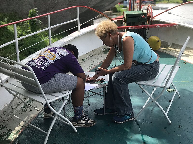 Am 26.08. waren 9 Kinder und 10 Erwachsene von Max geht in die Oper bei uns (https://www.buergerstiftung-halle.de/projekte/max-geht-in-die-oper/). Nach einem ausgiebigen Picknick an Deck wurde begeistert gekeschert, mikroskopiert und Müll gesammelt. Unsere neuen FÖJler:innen Lena und Marten waren auch schon mit dabei. Zum Abschluss gab es noch unsere berühmten Algenwaffeln beim Schreiben ins Tagebuch. Ein sehr schönes Projekt!