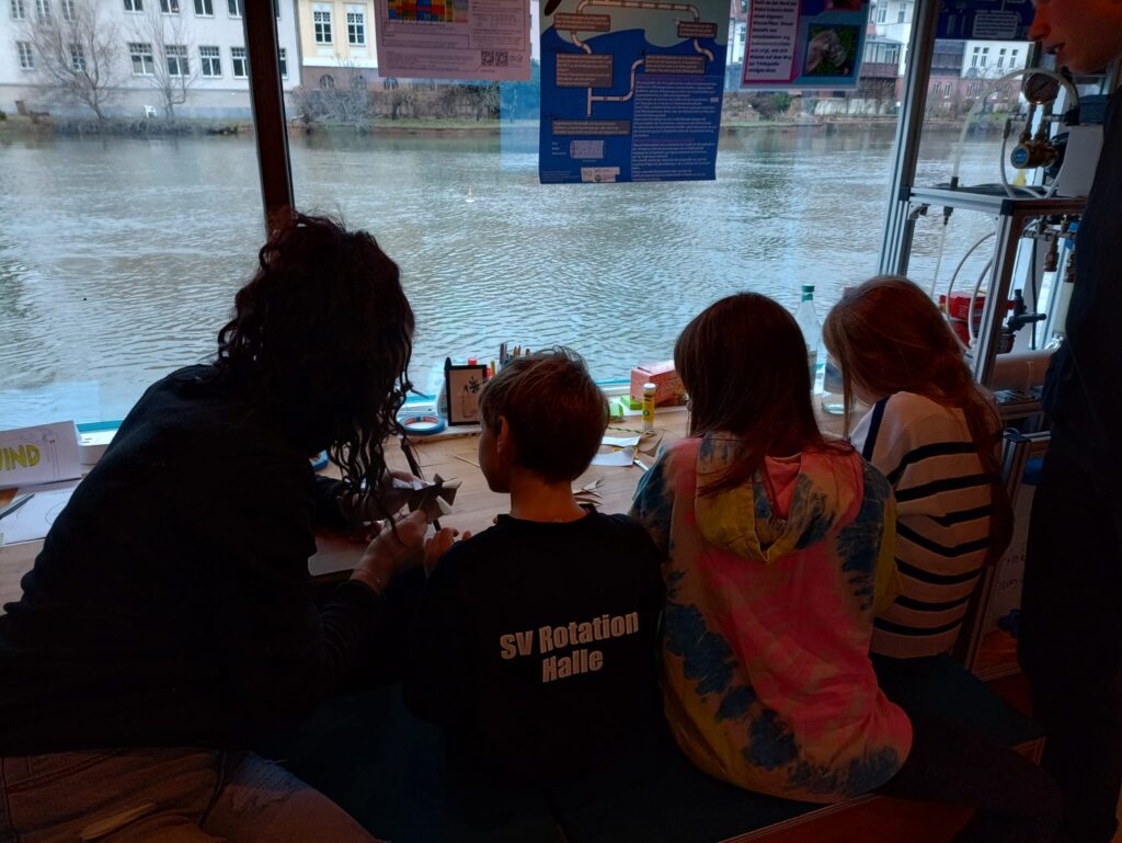 In den Winterferien besuchten uns Schüler:innen für zwei Feriencamps zu Themen rund ums Klima. An Stationen konnten die Gruppen zu Erneuerbaren Energien forschen, selber Wind- und Wasserräder bauen und mit Licht, Wärme und Solarmodulen experimentieren. Es gab außerdem eine Löt-Station für die Tüftler:innen. Die Tage wurden mit selbst hergestelltem und auf Klimafreundlichkeit untersuchtem Essen versüßt. So stellten wir gemeinsam Algen-Waffeln und einen Algen-Smoothie, Obstsalat und Gemüsechips her. Zu den Algen konnte noch genauer geforscht werden an einer Station mit unseren Algen-Bioreaktoren, Mikroskopen und einem Algenquiz. Aufgelockert wurden die Tage durch kleine Spiele, wie ein Klima-Bingo und eine Müllsammel-Aktion mit anschließender Auswertung der gefundenen Materialien. Nach dem Müllsammeln konnten die Kinder alte Stoffe zu Bienenwachstüchern recyclen, mit denen sie ab jetzt z.B. ihre Brote einpacken können, ohne Müll zu produzieren. Wir hatten sehr schöne und abwechslungsreiche Tage mit den Gruppen. Vielen Dank dafür!