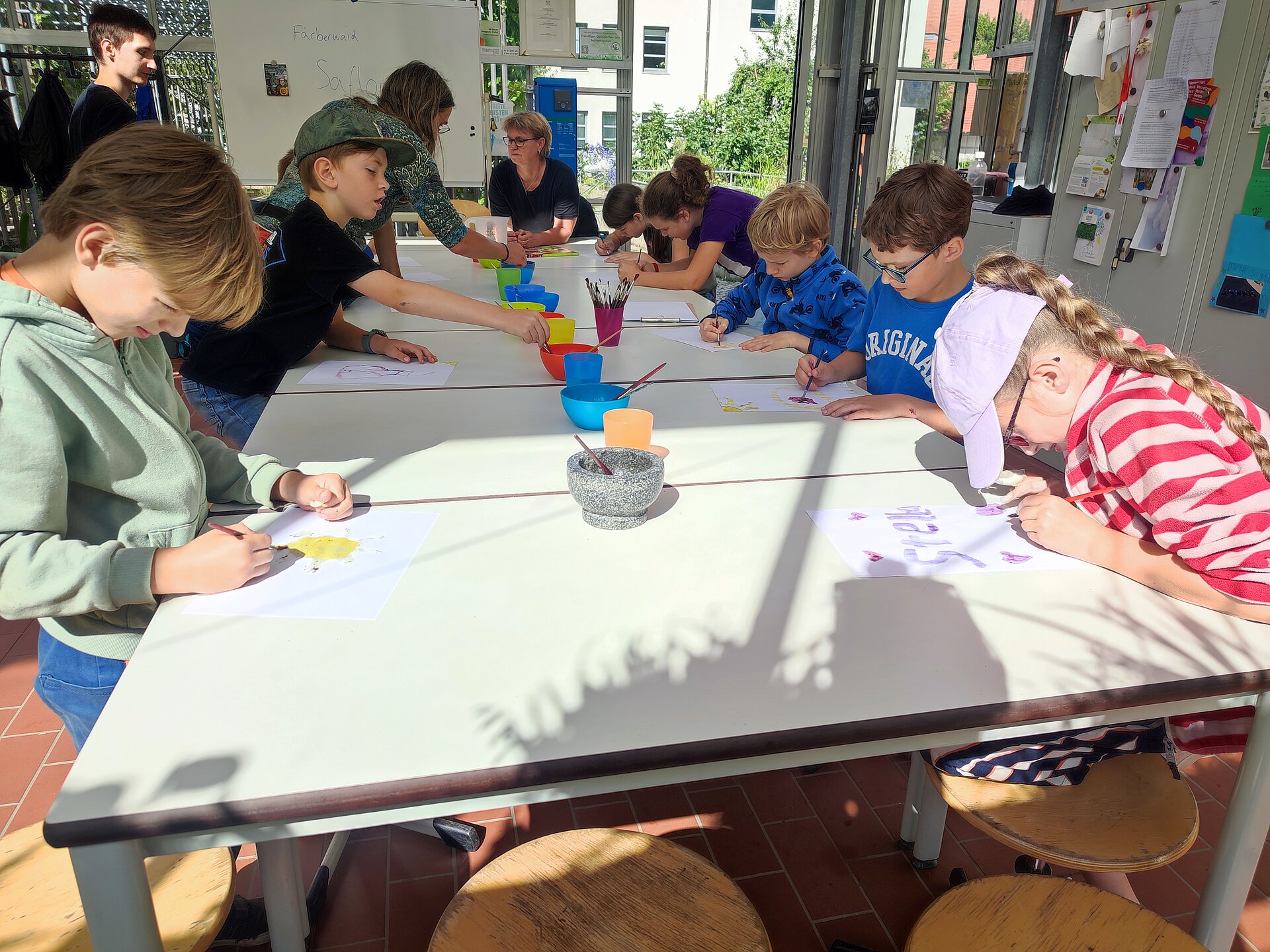 Am Dienstag ging es von Bord der Make Science zu einem Ausflug in den Pflanzengarten bei den Franckeschen Stiftungen. Dort zeigte Cornelia Jäger, wie mit unterschiedlichen Pflanzen gefärbt werden kann. Die Kinder erfuhren zudem etwas über die Geschichte des Gartens und die der speziellen Färbepflanzen. Anschließend durften sie aus Blüten selbst Farbe herstellen und damit auf Papier malen.