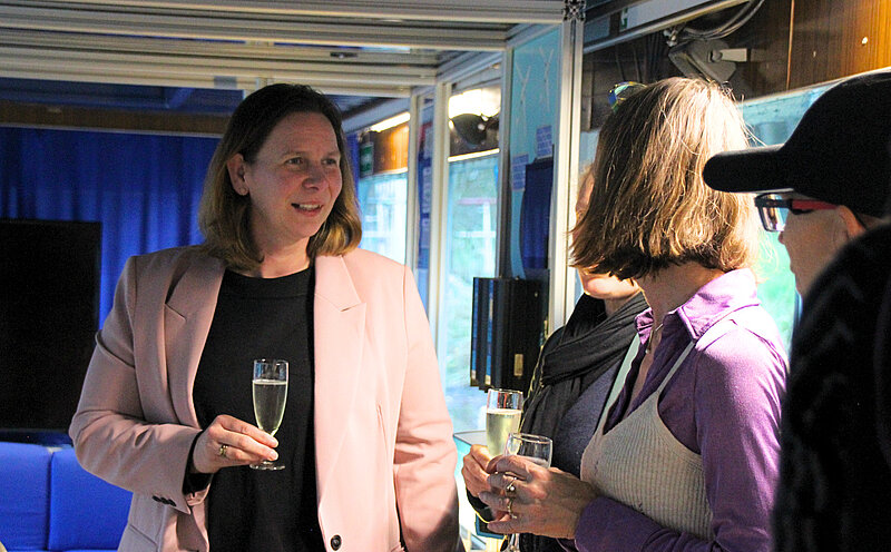Im Fokus des Abends stand die gleichnamige Ausstellung „Frauen im Strukturwandel“, die zeigt, wie Frauen den Wandel im Burgenlandkreis aktiv mitgestalten – in Kooperation mit dem JTC, regionalen Praxispartnern und der Agentur für Aufbruch. Vor Ort waren Anja Reißmann (Vorsitzende Verein Stadtlabor Zeitz), Tina Uhlemann (Stadtlabor Zeitz), Anett Escher (Inklusiver Anglerverein in Weißenfels, Netzwerk engagierter Frauen), Kathrin von Ow (KrimZKrams), Constanze Zwies (JTC), Mareike Pampus (Agentur für Aufbruch) und Hermine Bähr (JTC).