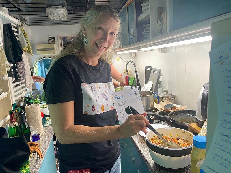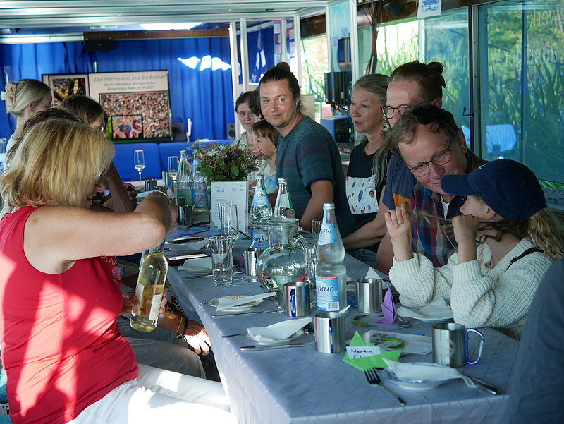 Die besondere Atmosphäre auf dem Schiff lud von Jung bis Alt jeden ein, sich über die Vielfalt der Bohne auszutauschen. Passend zum Thema gab es ein Drei-Gänge-Menü mit ganz vielen verschiedenen Bohnen und anderen Hülsenfrüchten. Wusstet ihr zum Beispiel, dass man aus ihnen Aufstriche und vegane Burger machen kann? Für viele der Gäste überraschend: Sogar der Nachtisch (Mousse au Chocolat) enthielt Hülsenfrüchte! Dank STARK-Förderung war das Dinner für unsere Gäste kostenlos.