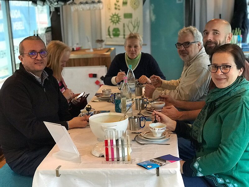Am 13.12.23 nahm der Fachbereich Bildung und Soziales der Stadt Halle Saale an unserer Science Seeing Tour teil. An verschiedenen Orten Halles lernte die Gruppe Neues über die Stadt und gleichzeitig Wissenswertes aus der Forschung zum Thema Klima und Ernährung. Anschließend besuchte die Gruppe die Make Science Halle und rundete den Ausflug mit einem Zero Waste Dinner ab. Zu den regionalen und saisonalen Gerichten gab es außerdem noch Quizfragen und eine Führung durchs Schiff.